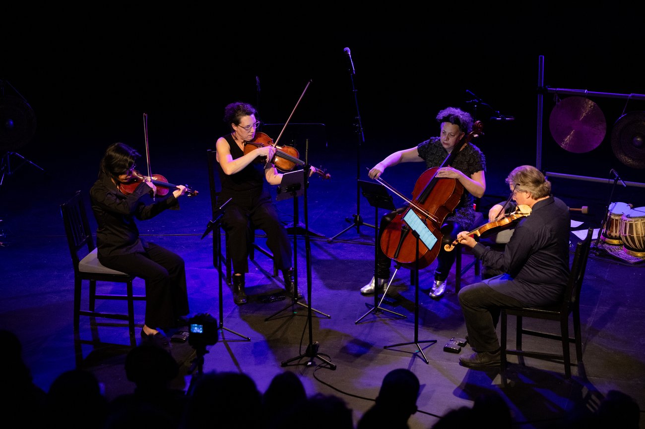 Our Québec Musiques Parallèles tour runs from October 24 to November 2 in Matane, Saint-Maxime-du-Mont-Louis, Rimouski, Chicoutimi, and Lévis. We will be sharing the stage with our colleagues from Quatuor Mémoire—a young, emerging string quartet—and the duo Drostanolone (Éric Normand and Gueze) in Matane, Rimouski, and Lévis. For this tour, we reprise Steve Reich's Different Trains. In this seminal work of American minimalism, the amplified string quartet interacts with sound and vocal recordings. It juxtaposes Reich's intimate memories of train journeys in the United States with the horror of the Holocaust transport trains.